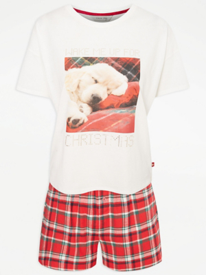 Dog Graphic Print Checked Christmas Pyjamas Women at ASDA